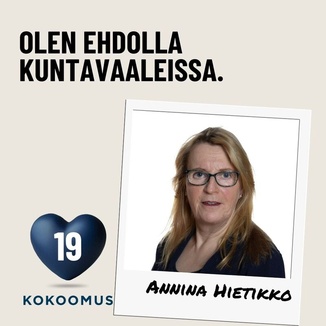 Olen luokanopettaja Teuvan Yhtenäiskoululla. Työvuosia kunnan työntekijänä on kertynyt jo useamman vuosikymmenen verran. Takana on nyt kaksi kautta valtuutettuna. Edellinen oli 2000- luvun alussa. Maatalousyrittäjyyttä tuli harjoitettua yli 30 vuotta ja hevostalous on tuttua.