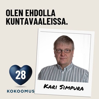 Olen Kari Simpura ja asun kauppilassa. Perheeseen kuuluu vaimo Helena ja kuusi pääosin jo omilleen muuttanutta lasta, lapsenlapsia on kuusi. Työpaikka on Botniarosk Oy:n jätekeskuksessa paskoonharjulla.